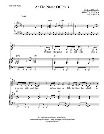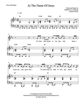 • Sheet Music (Trio arrangement/piano accomp.) Key of Eb-E The price below is per copy. If you need more than one copy, please order accordingly.
