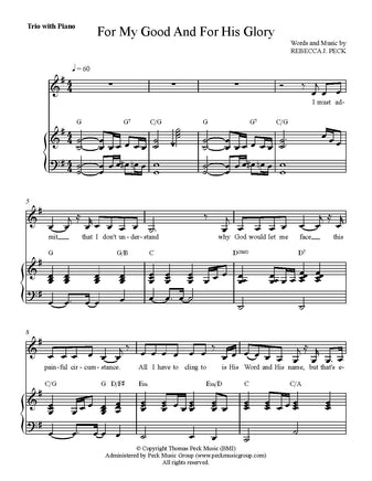 • Sheet Music (Trio arrangement/piano accomp.) Key of G to Bb The price below is per copy. If you need more than one copy, please order accordingly.