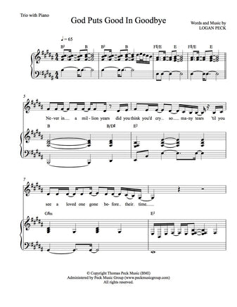 • Sheet Music (Trio arrangement/piano accomp.) Key of B The price below is per copy. If you need more than one copy, please order accordingly.