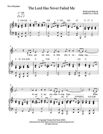 • Sheet Music (Trio arrangement/piano accomp.) Key of C to Db to D The price below is per copy. If you need more than one copy, please order accordingly.
