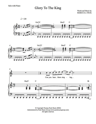 • Sheet Music (solo vocal/piano accomp.) Key of G to C For help selecting a key, click the green key finder. The price below is per copy. If you need more than one copy, please order accordingly.